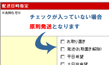 お取置・発送はご注文時の【配送日時指定】でチェックを入れるだけ!